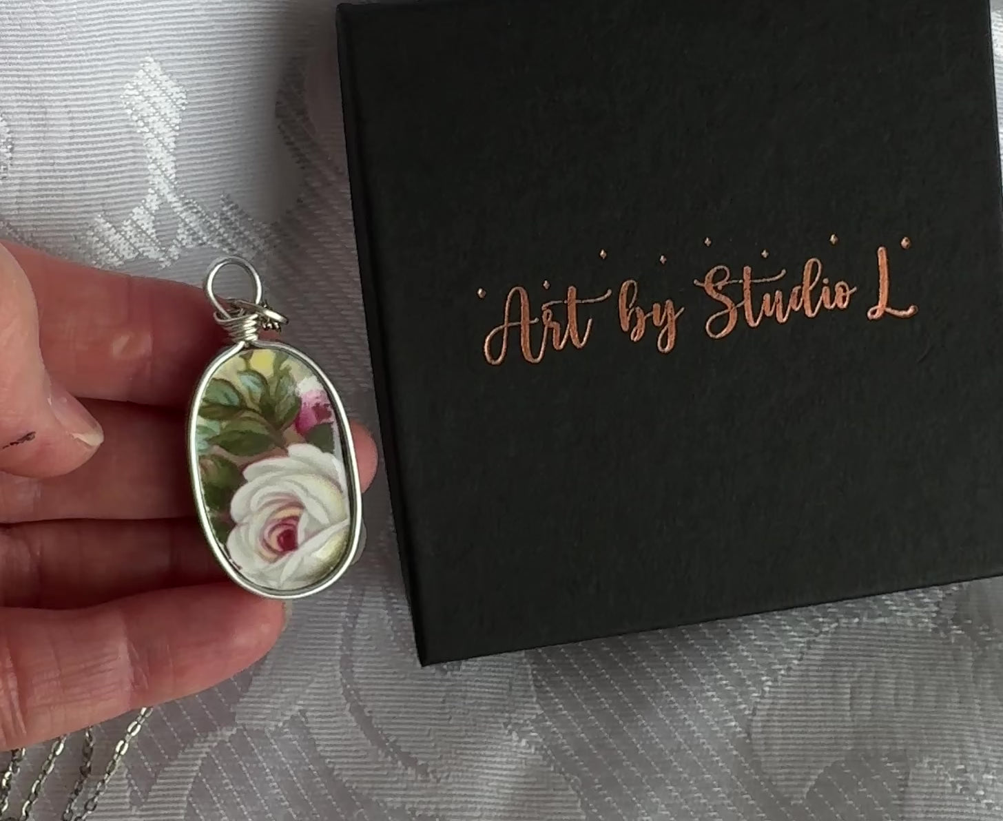 Larger than C_4, and more generous feeling for it. The cream rose against the silver frame is a quieter combination than the burgundy, softer in the hand and on the eye.